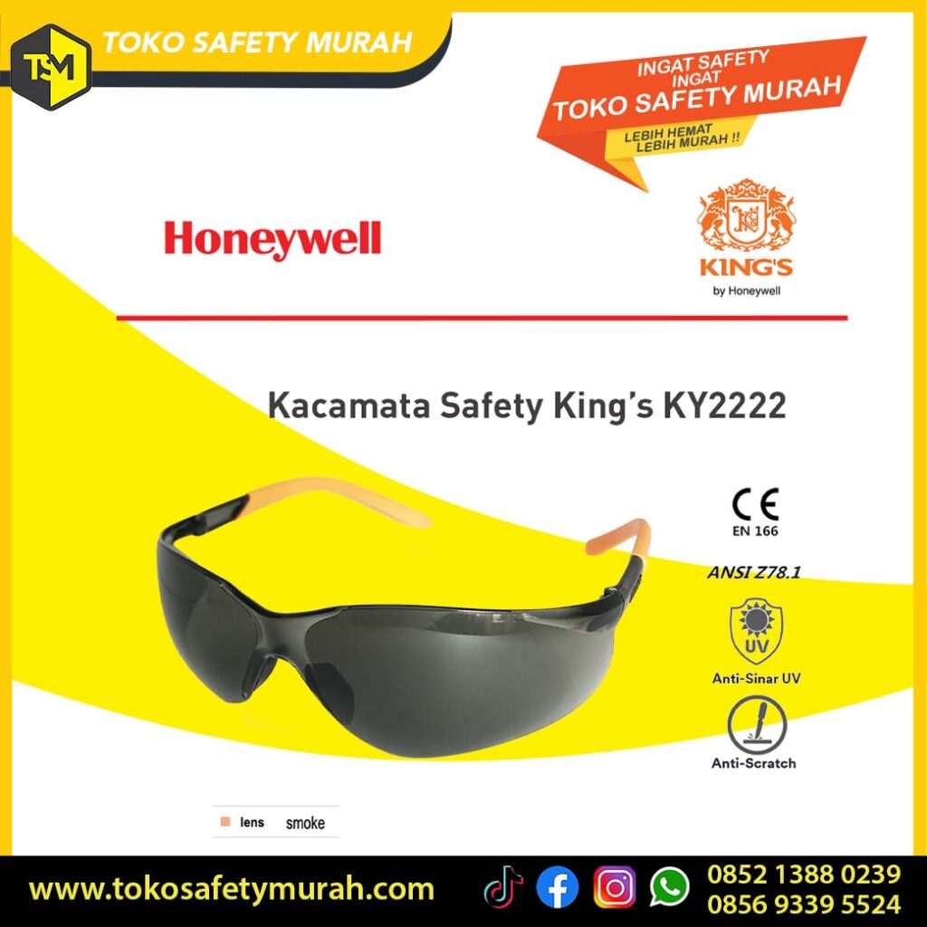 Kings KY 2222 dirancang untuk pekerjaan berat seperti pengelasan. Dengan lensa hitam dan desain kokoh, kacamata ini melindungi mata dari cahaya intens dan partikel kecil, dengan keunggulan lensa hitam untuk las, desain kokoh.