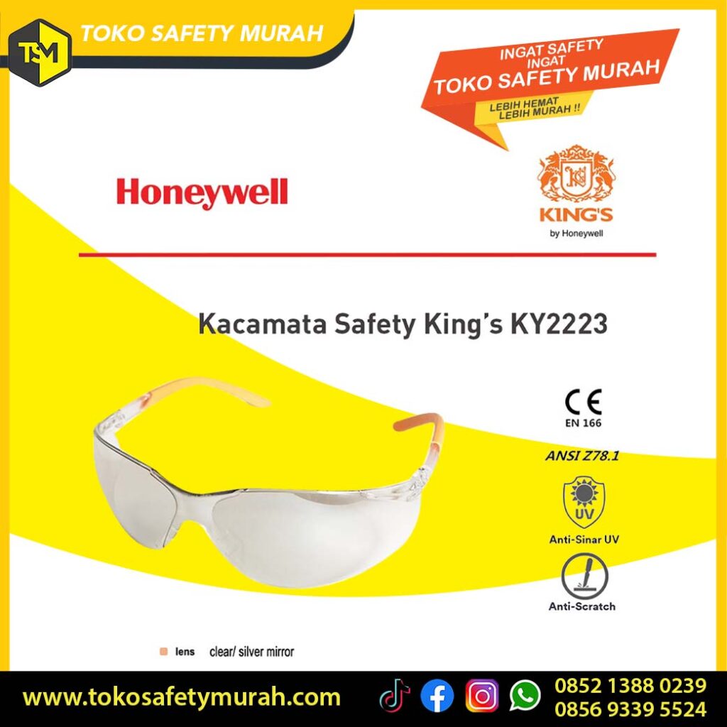 Kacamata Safety King's KY 2223 hadir dengan fitur lensa clear mirror yang tahan gores (anti-scratch) dan dirancang untuk memberikan perlindungan maksimal dalam berbagai kondisi kerja.