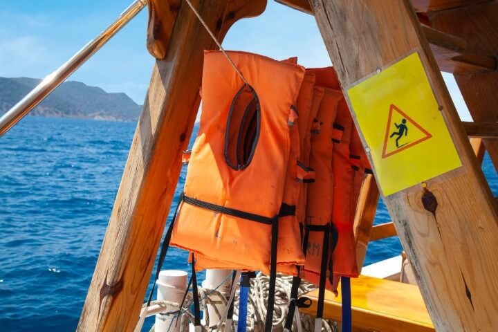 Kamu pasti sudah tidak asing dengan jaket pelampung, jaket semacam ini sudah pasti ada di setiap kapal. Jika terjadi kecelakaan kapal, maka jaket ini bisa digunakan sebagai alat keselamatan yang utama. Dimana jaket ini bisa melingkupi badan dan membantunya untuk mengapung di atas perairan, warnanya pun mencolok untuk mempermudah pencarian oleh tim evakuasi.