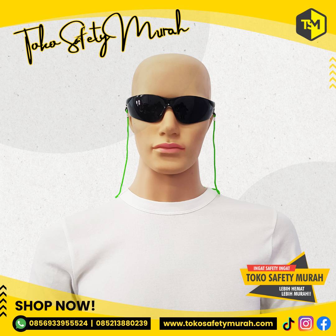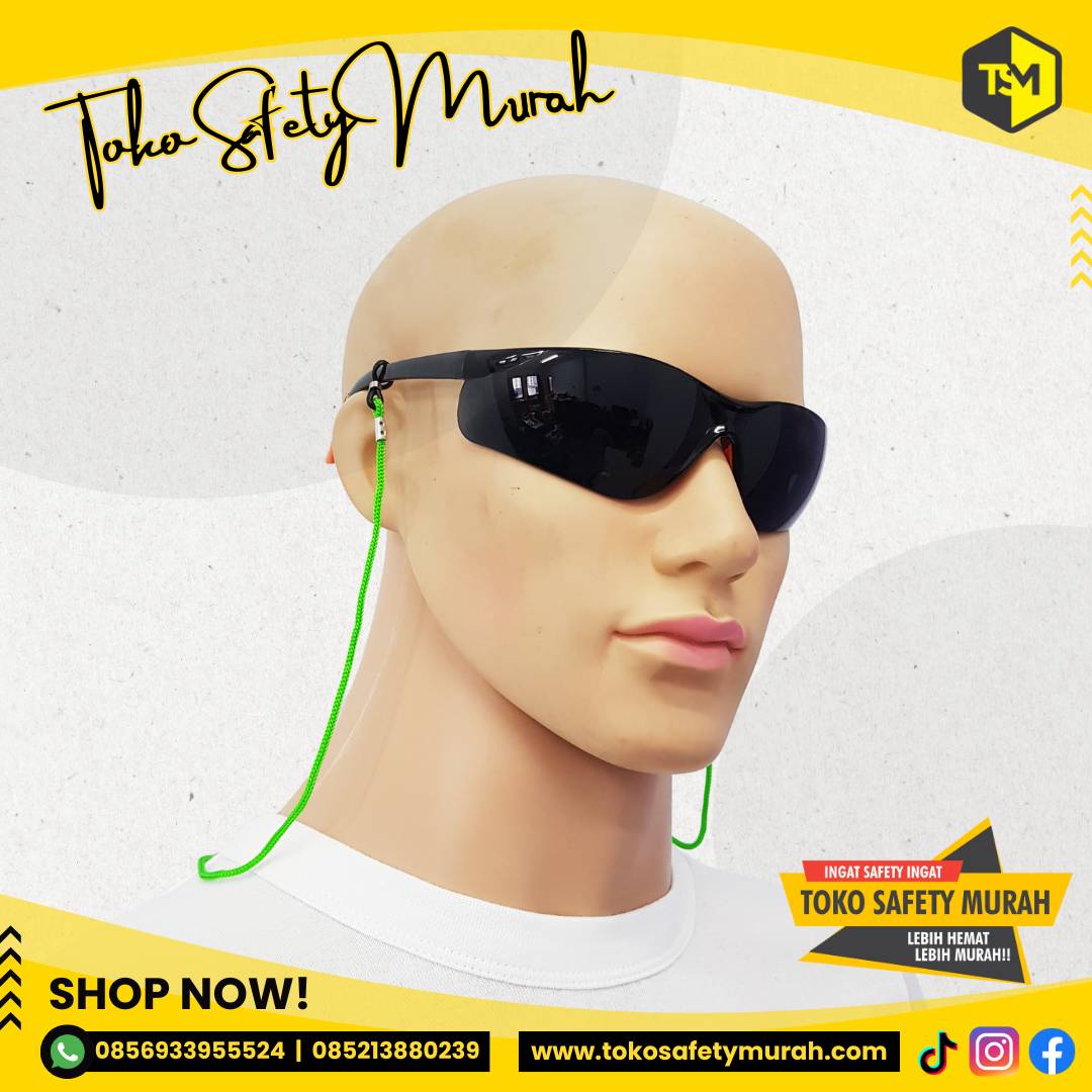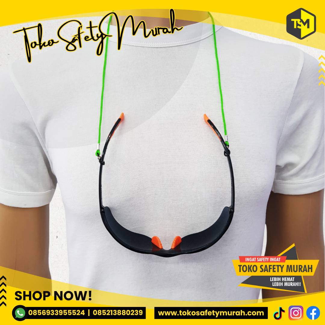 Dengan tali kacamata (googles polyester cord).