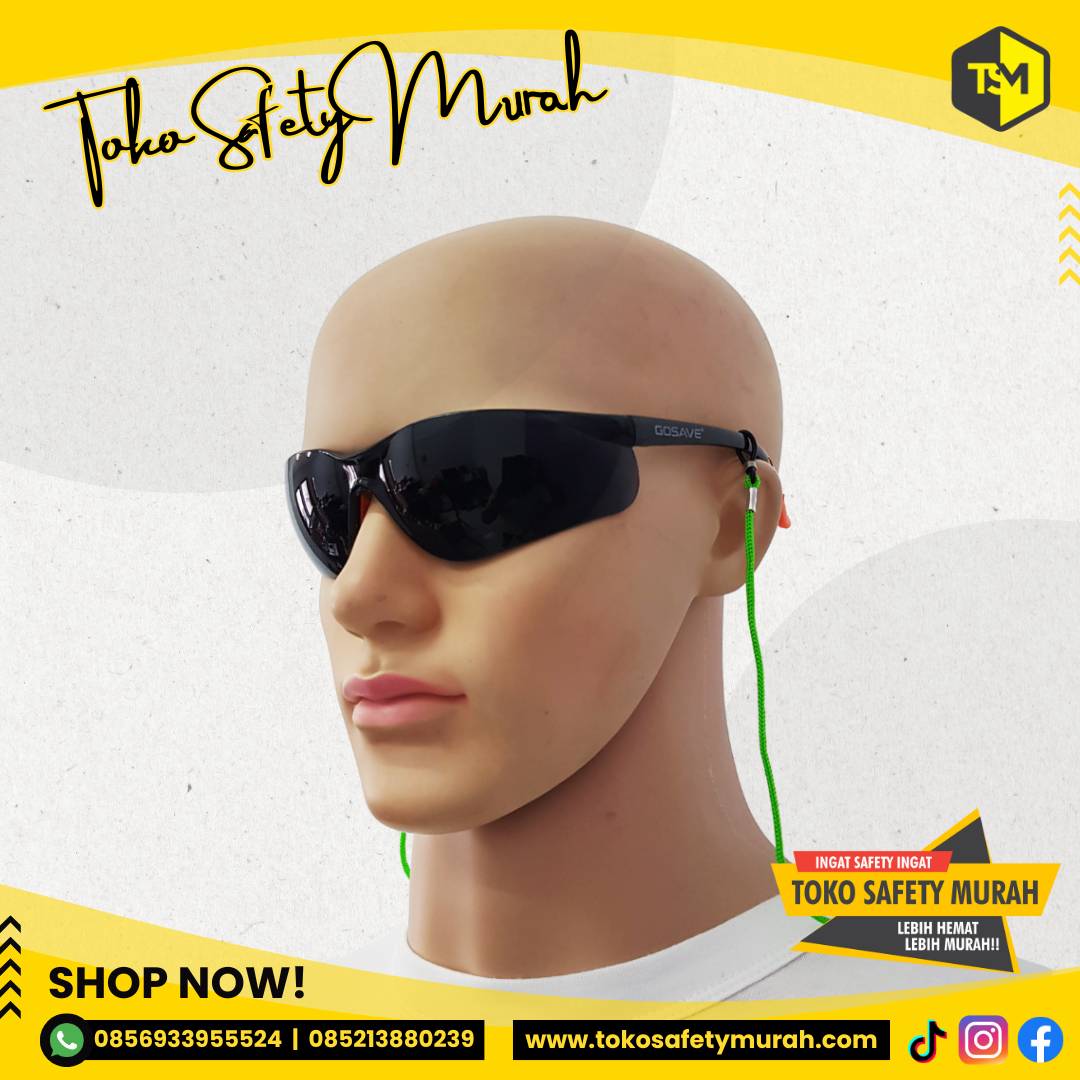 Lensa kaca berbahan polycarbonate sehingga mampu melindungi mata dari pecahan material.