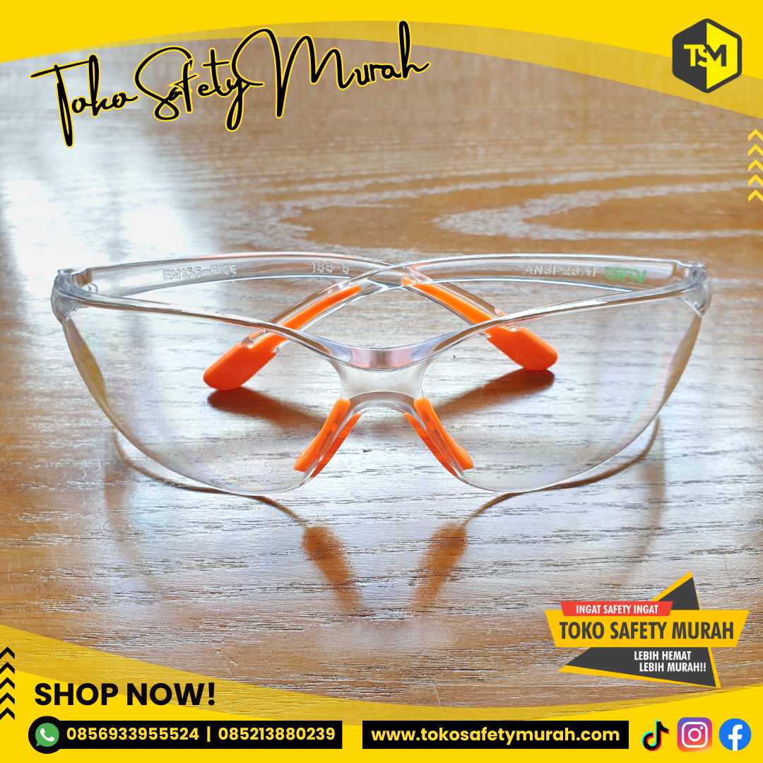 - Lensa kaca bahan polycarbonate mampu melindungi mata dari debu, pecahan material dll yg dapat mengancam keamanan / kesehatan mata.