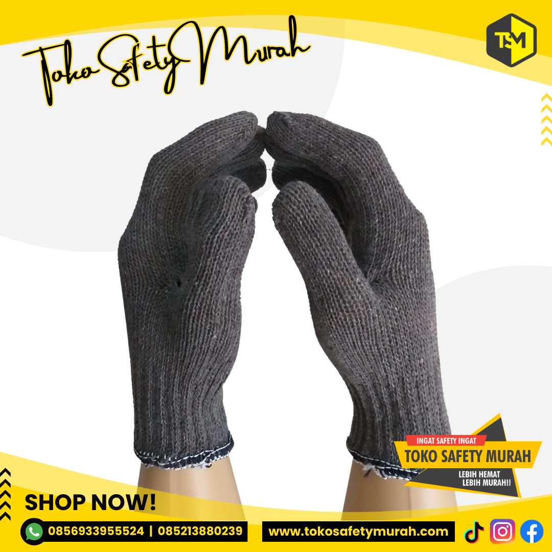 Sarung Tangan Kerja Kain Katun B5 Abu Rajut Benang 5 Safety Proyek Kerja