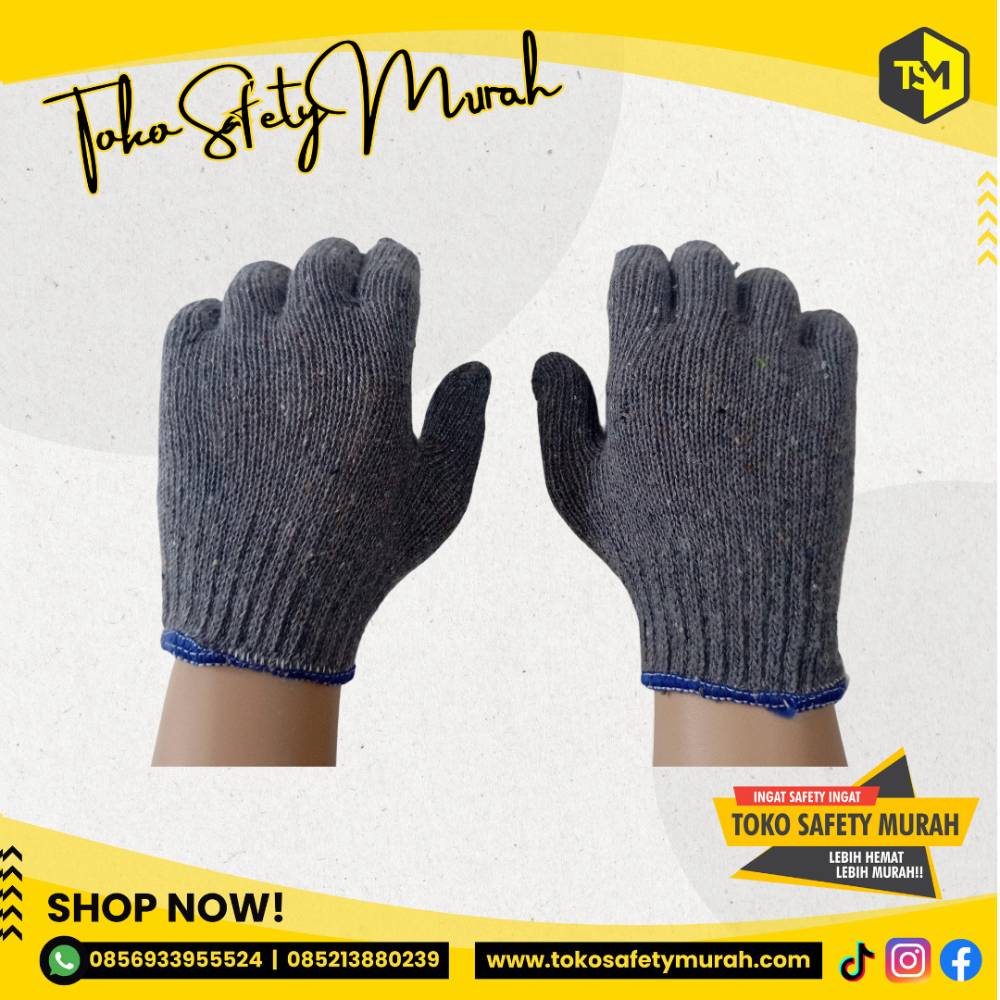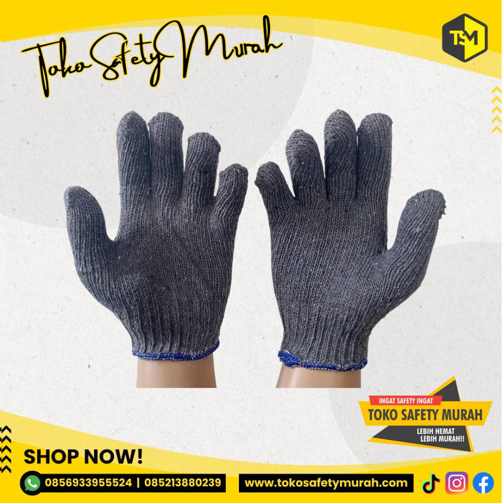 Sarung Tangan Kerja Tukang Bangunan Proyek Kain Katun Rajut Benang 5 Abu Nippon / B5 Safety Working Glove 5B Grey List Biru #Jual Alat Pelindung Diri APD Alat Keselamatan Kerja K3