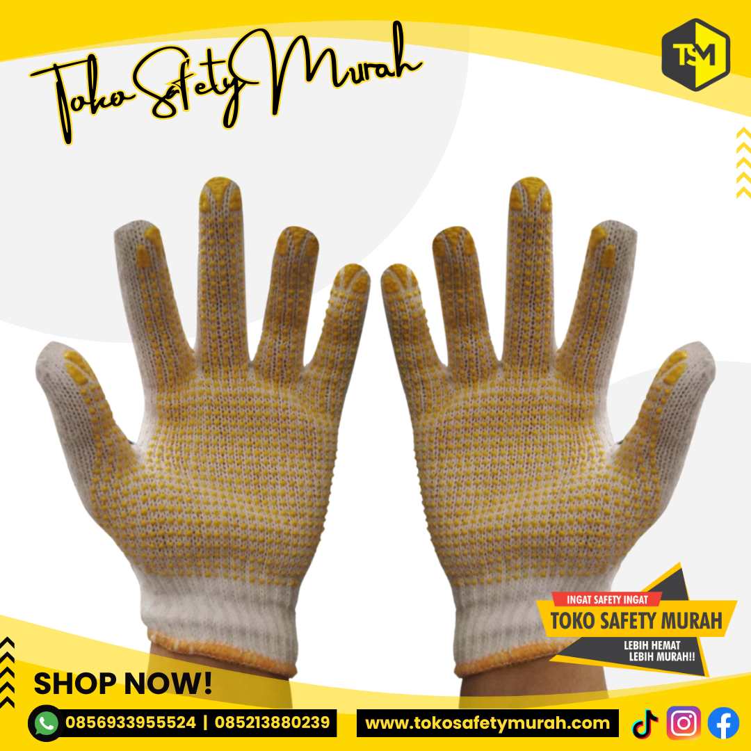 Aplikasi dalam pekerjaan Industri atau manufactur untuk melindungi tangan dari gesekan dan cengkraman anda lebih kuat dan tidak mudah slip. Bahan dasar benang katun rajut membuat sarung tangan lebih leluasa digunakan dan tetap nyaman dalam kondisi tangan berkeringat.
