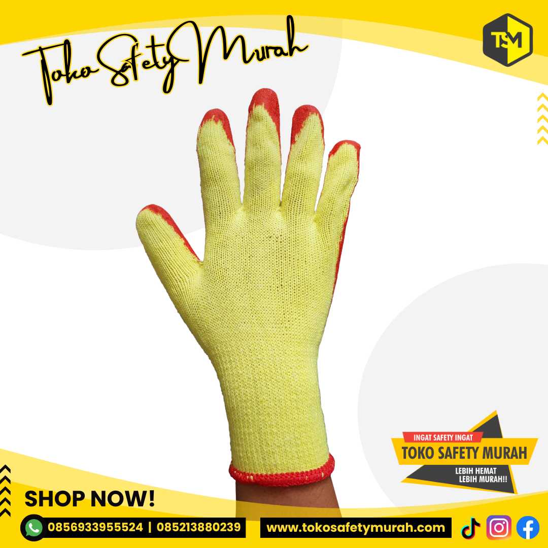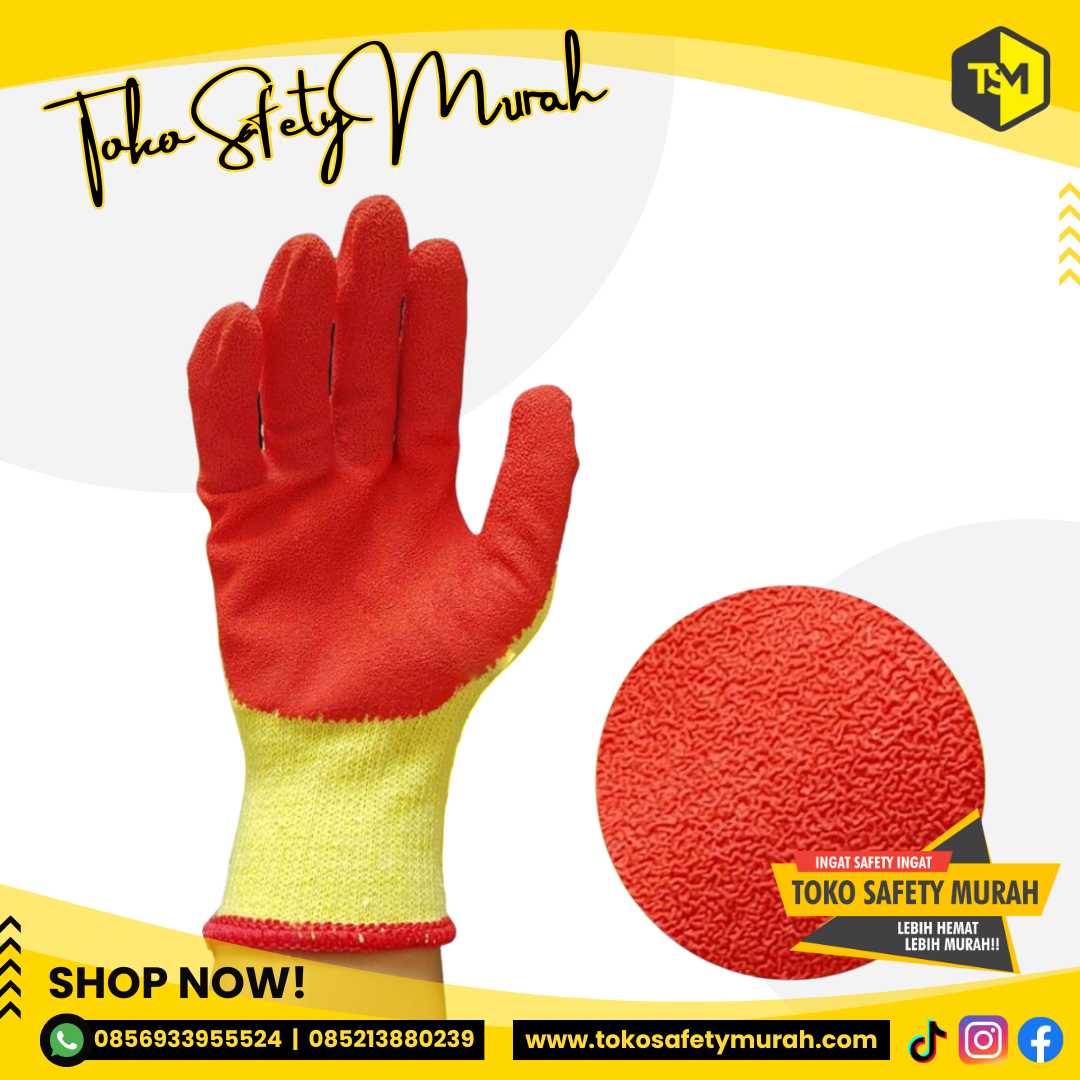 Sarung Tangan Safety Lapis Karet Latex Tebal SAS utk Angkat Kaca Telapak Anti Slip Kombinasi Katun Latex