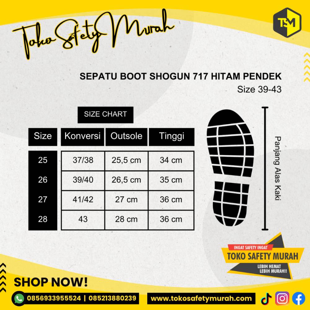 - Size 28 setara ukuran 43, tinggi 27cm, outsole 28 cm (pemesanan ukuran 43 akan dikirim size 28)