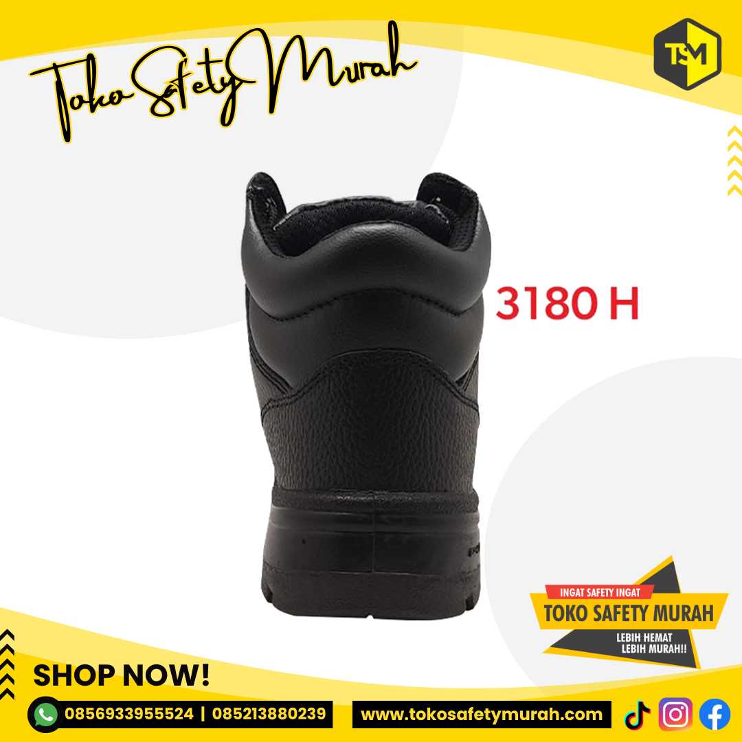 3180 H Sepatu safety ankle dengan bahan kulit asli dan outsole Dual PU.