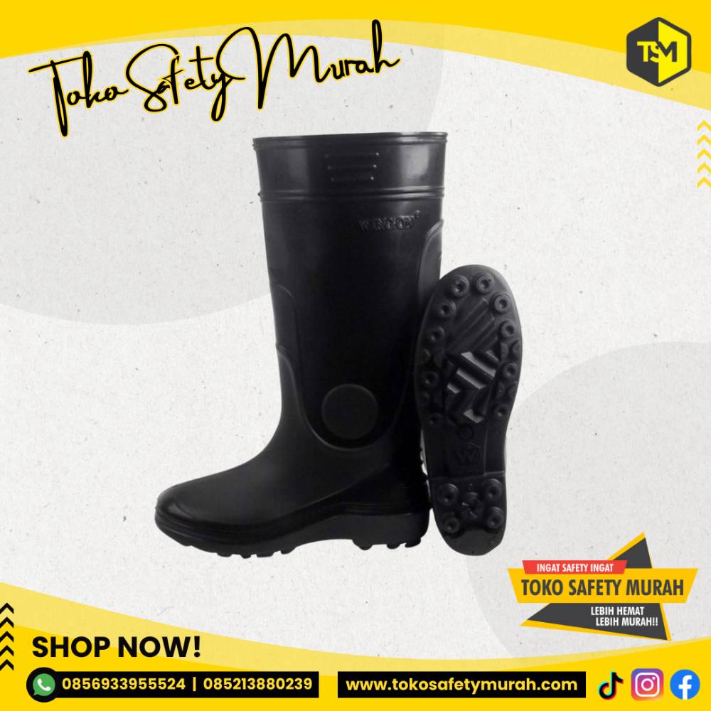 Sepatu Boot Wing On Karet Tinggi Untuk Kerja Proyek / Cor / Kebun / Taman