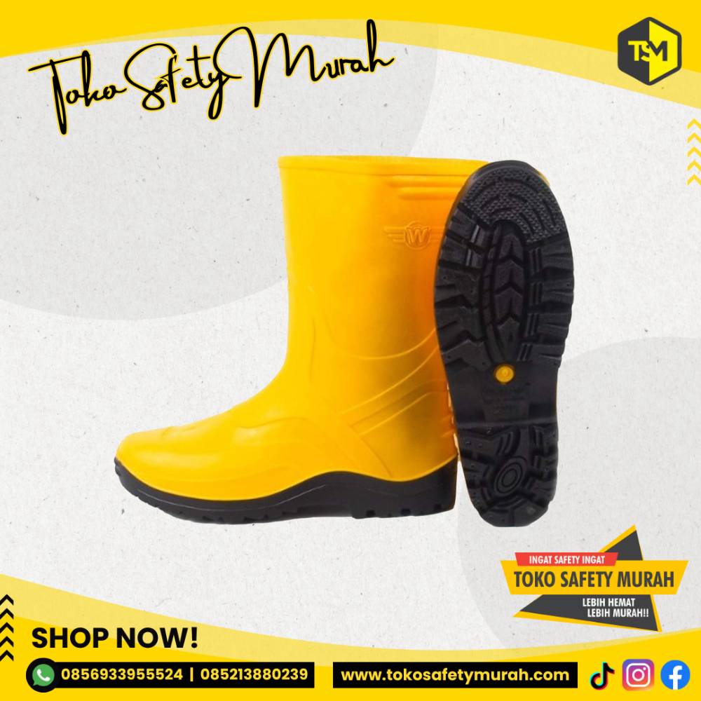 Sepatu Boot Pendek Kuning Boots Karet Lentur Anti Air Antislip APD Kerja Proyek Pabrik Murah