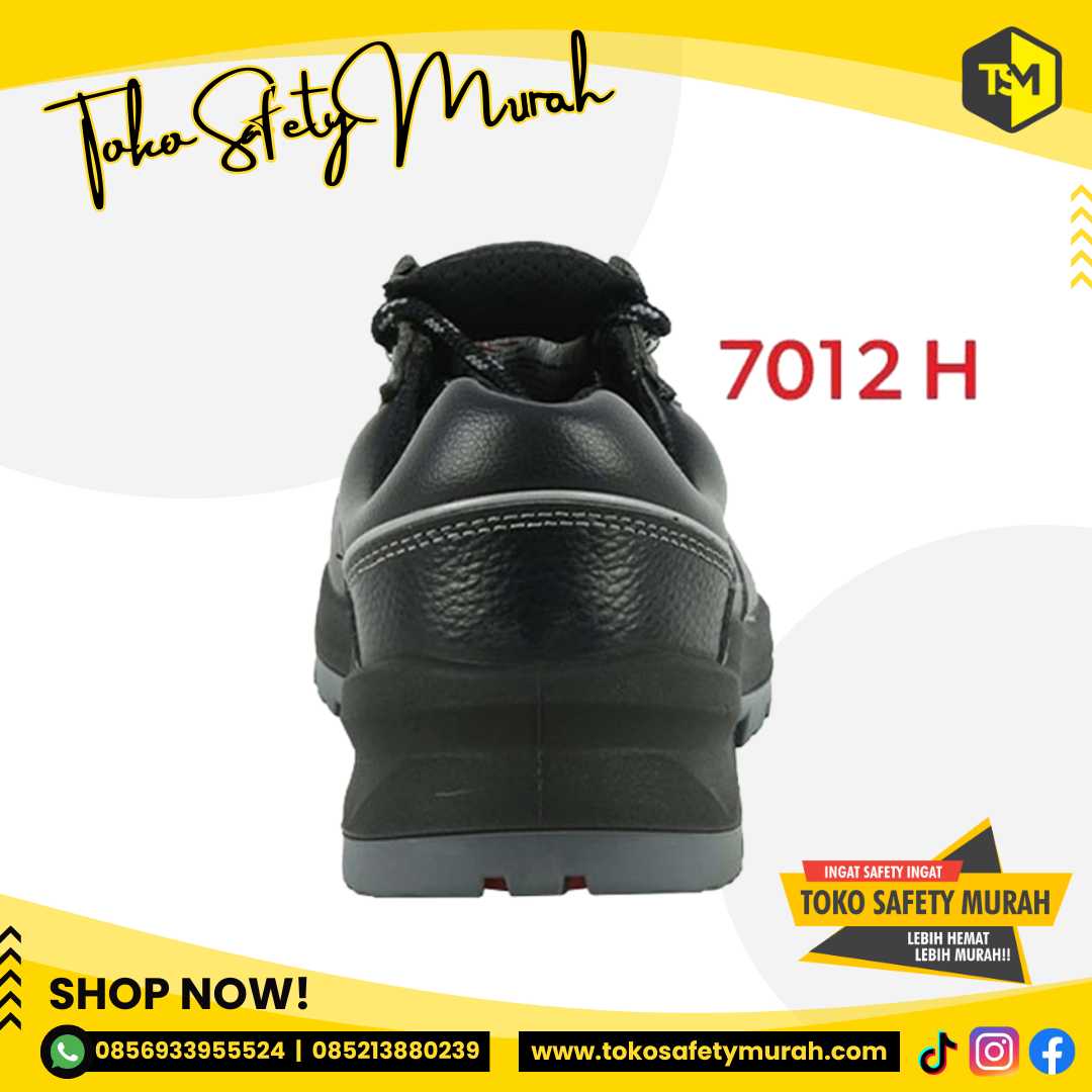 7012 H Sepatu safety pendek bertali terbuat dari bahan kulit asli dan outsole Dual PU.