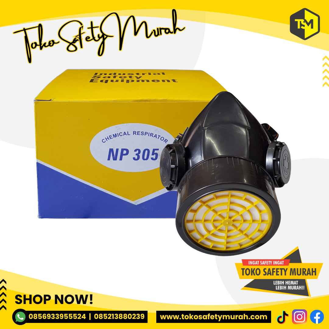 SIAP PAKAI Masker Respirator Gas Asap Debu Kimia Fogging NP 305 + FREE RC203 isi Ulang Filter Catridge Chemical Mask NP305 RC 203