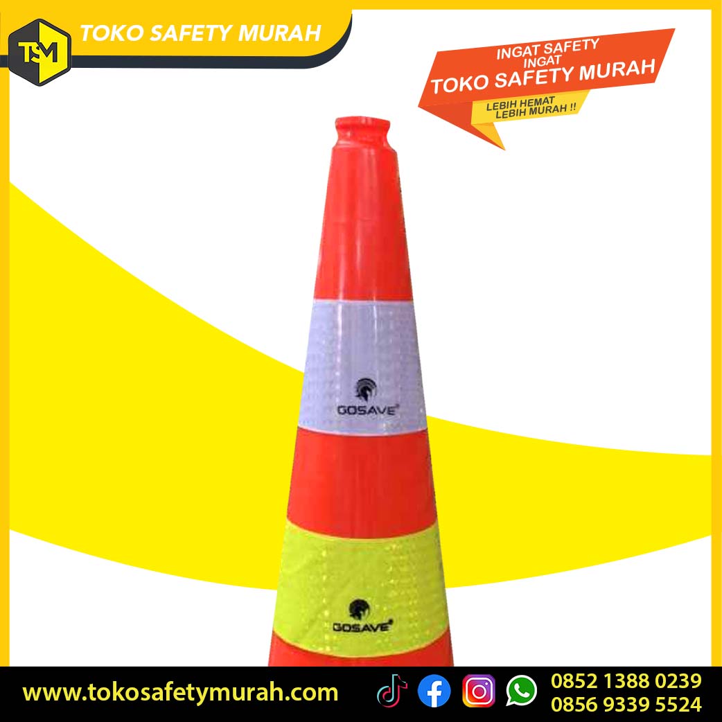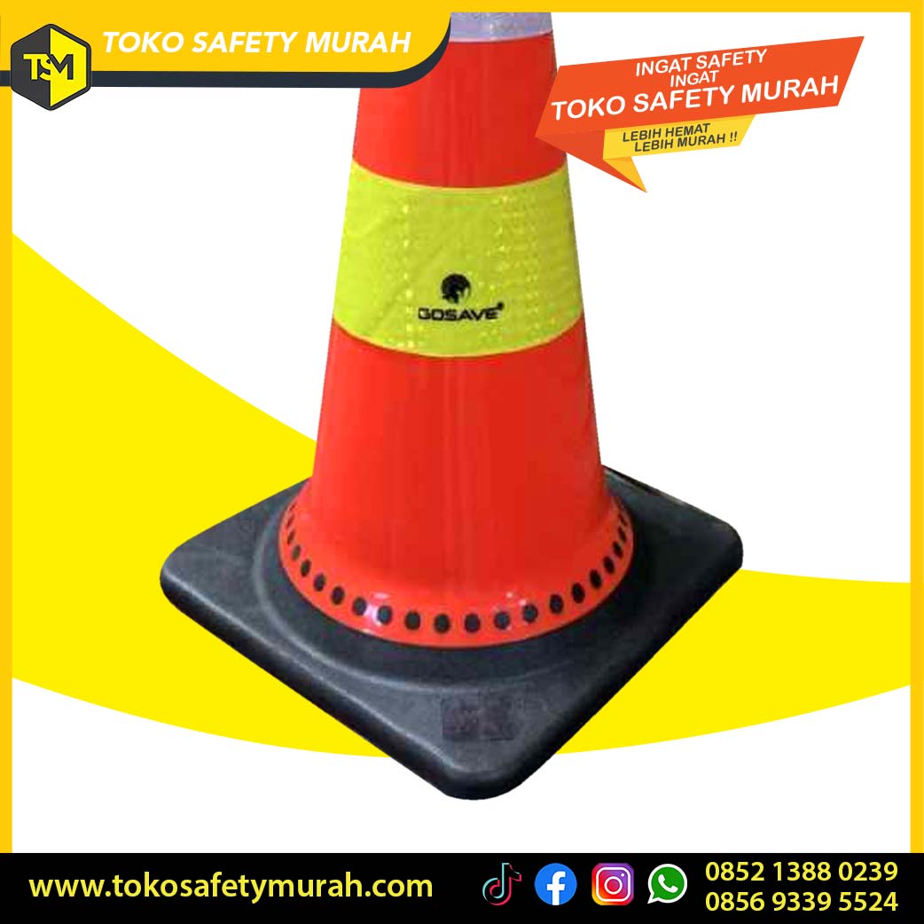 Traffic Cone Dasar Hitam 75 Cm ( Rubber ) Double Scotlight Gosave