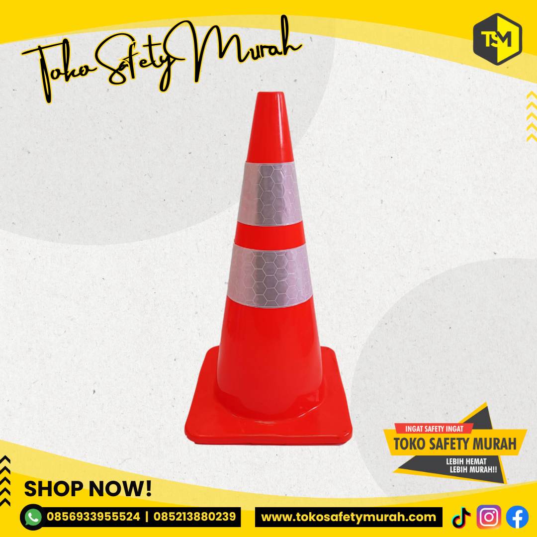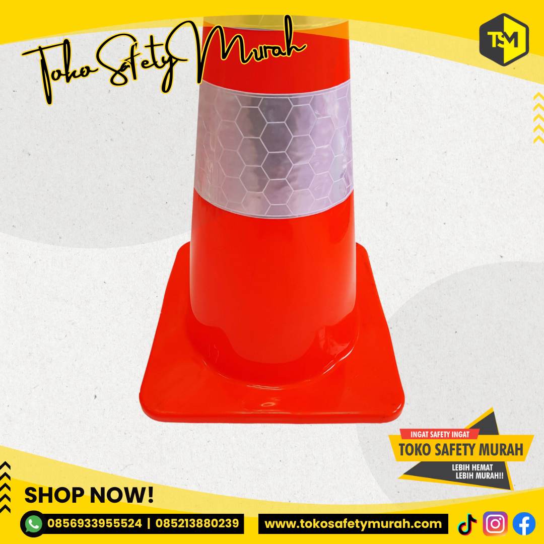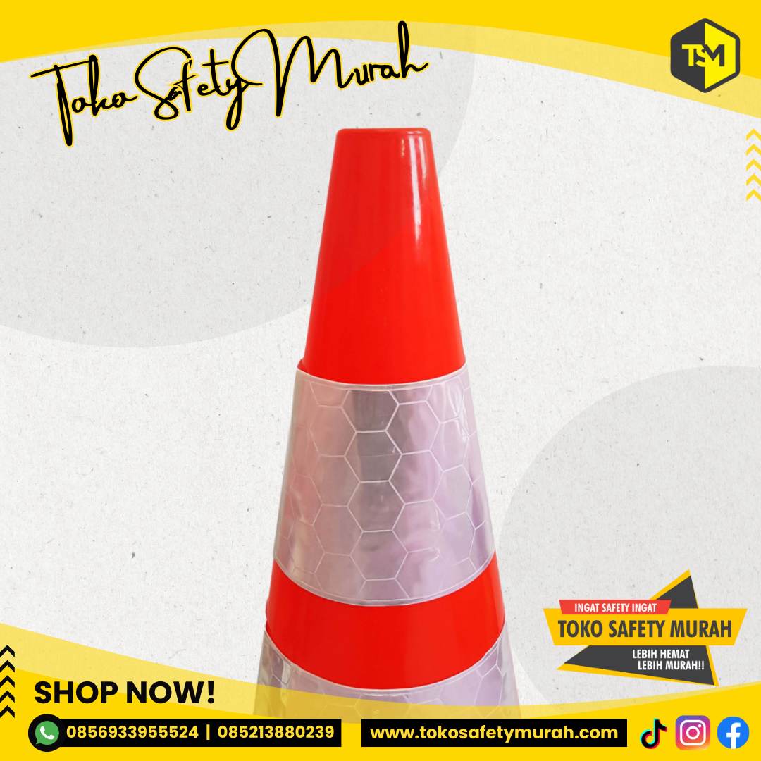 [ TRAFFIC CONE 70 CM DASAR ORANGE PREMIUM HX SCOTLIGHT PUTIH PUTIH ]