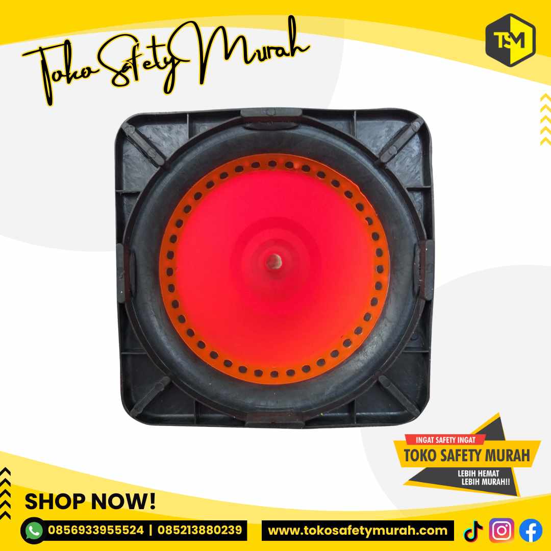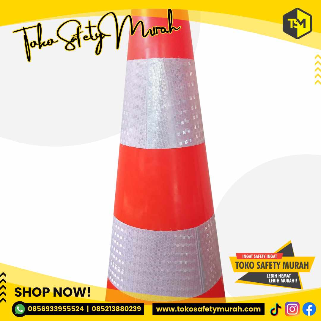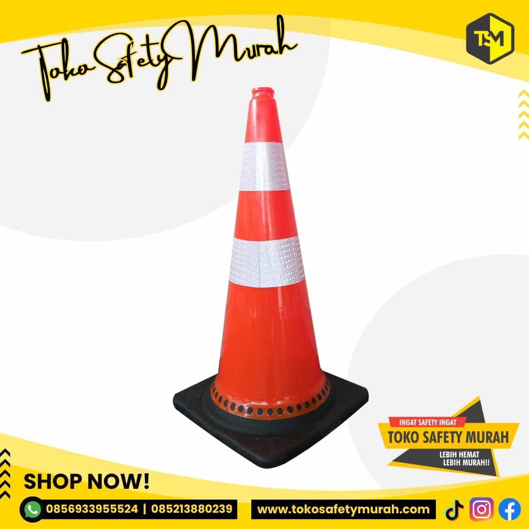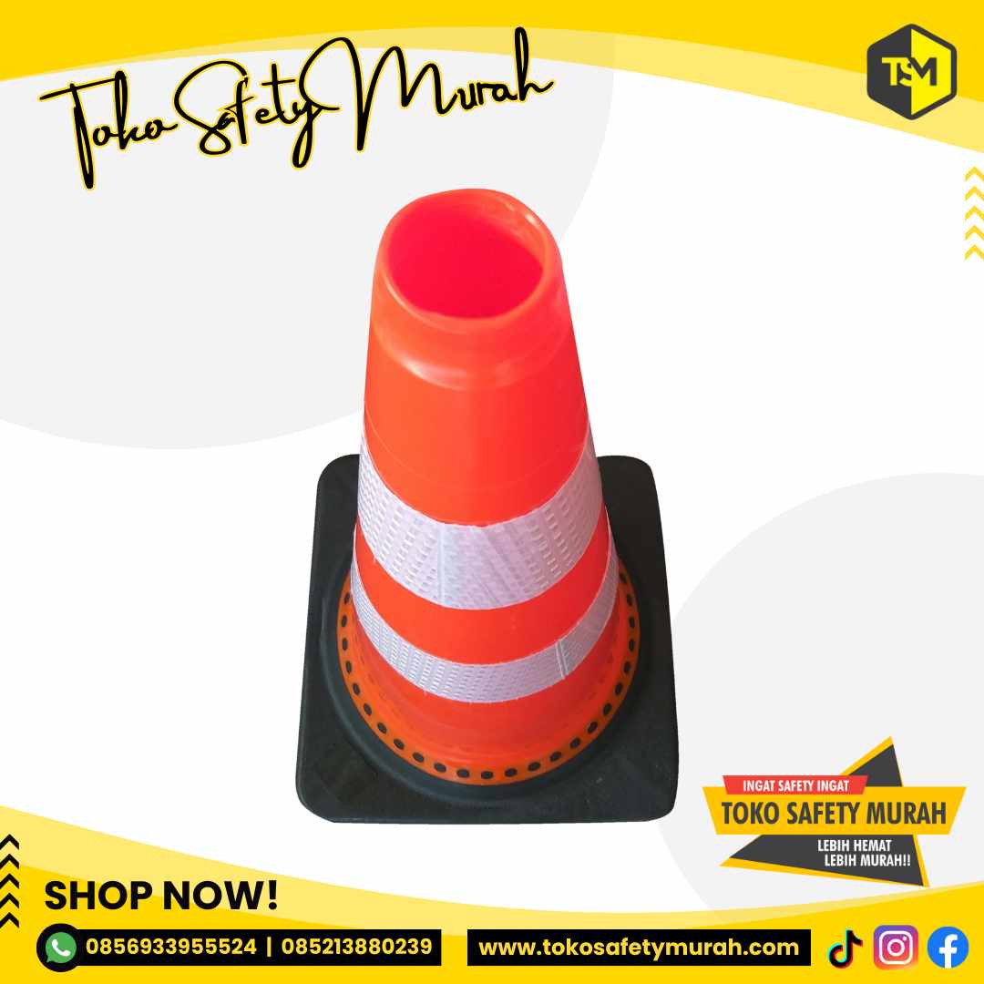 [TRAFFIC CONE 75 CM DASAR HITAM SCOTLIGHT PUTIH KUNING YJS]
