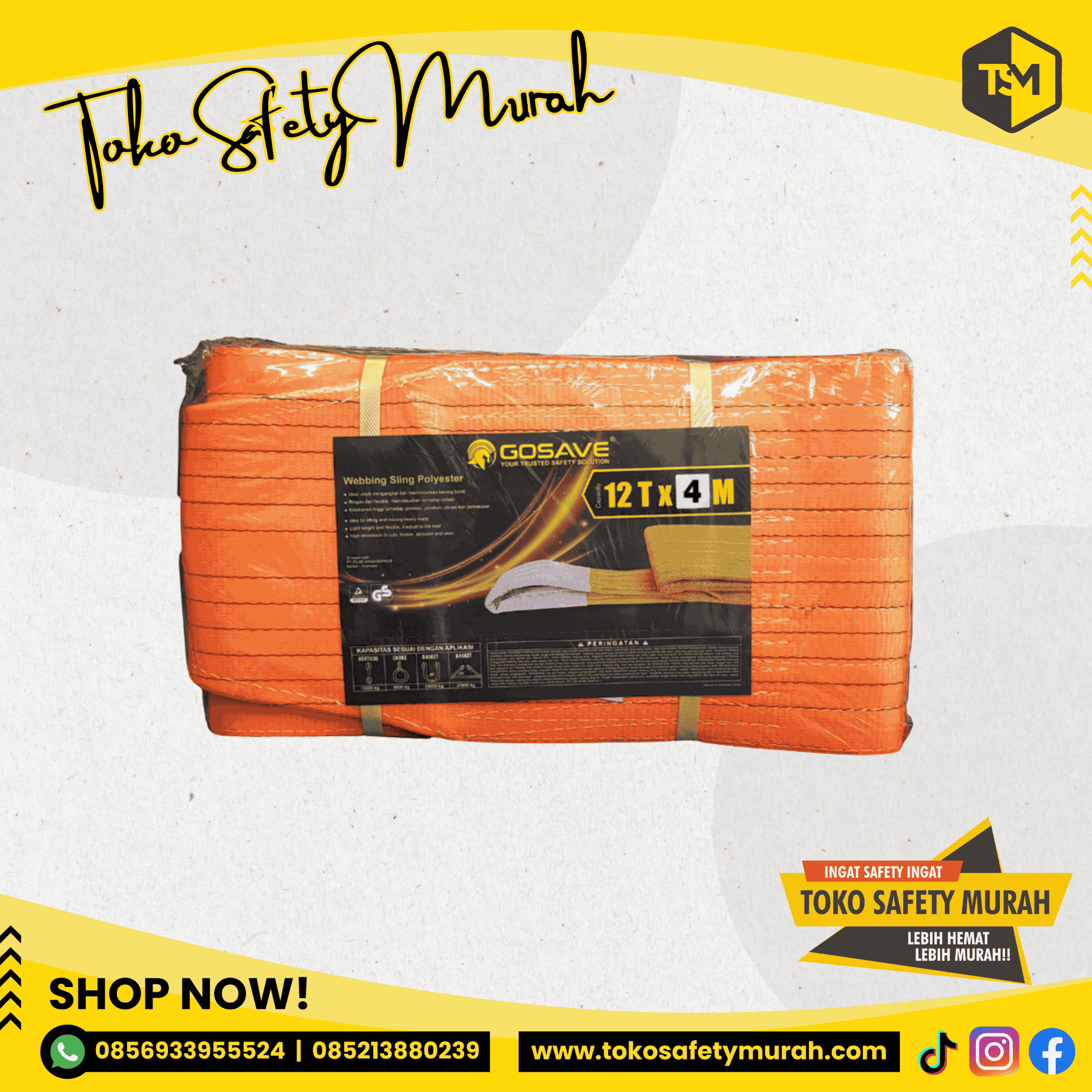 Webbing Sling Gosave 12 Ton X 8 Meter Tali Angkat Safety