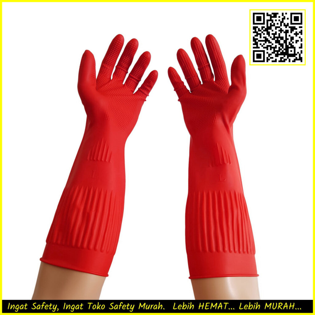 Produk sarung tangan karet latex bisa menjadi opsi maksimal untuk kebutuhan perlindungan sarung tangan safety terbaik tahan bahan kimia. Produk ini juga memiliki panjang mencapai 38 cm hingga hampir menyentuh siku. Dengan bahan karet latex, sarung tangan ini tahan air, bahan kimia, dan juga tidak mudah selip.
