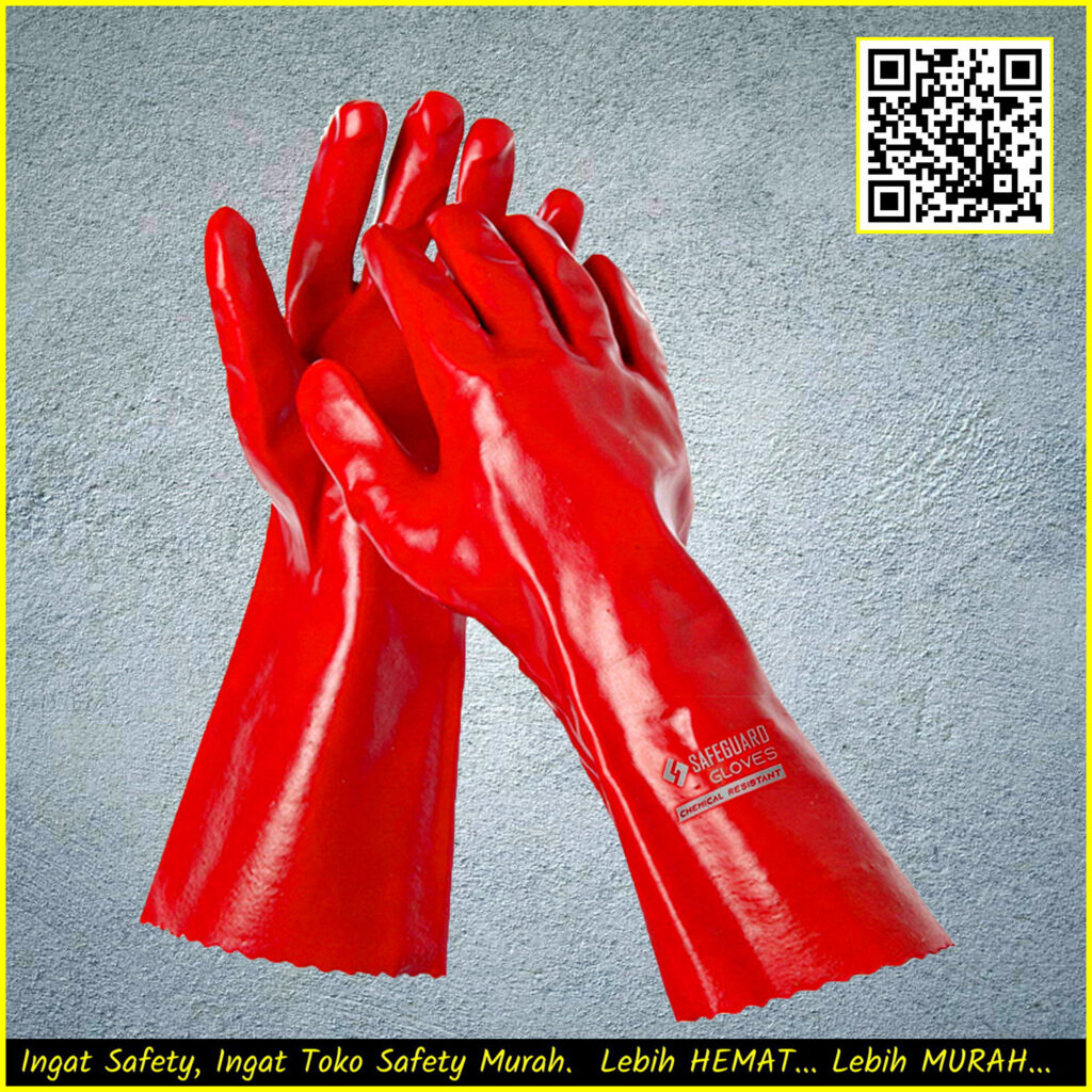Produk rekomendasi selanjutnya dari tokosafetymurah adalah sarung tangan PVC merah untuk menahan panas dan asam kimia. Produk ini memiliki bahan dasar karet tebal yang bagian dalamnya menggunakan kain katun lembut. Jadi lebih aman dan nyaman. Produk ini juga tidak mudah terbakar, sehingga cocok untuk aktivitas pemupukan, laboratorium, hingga baja.